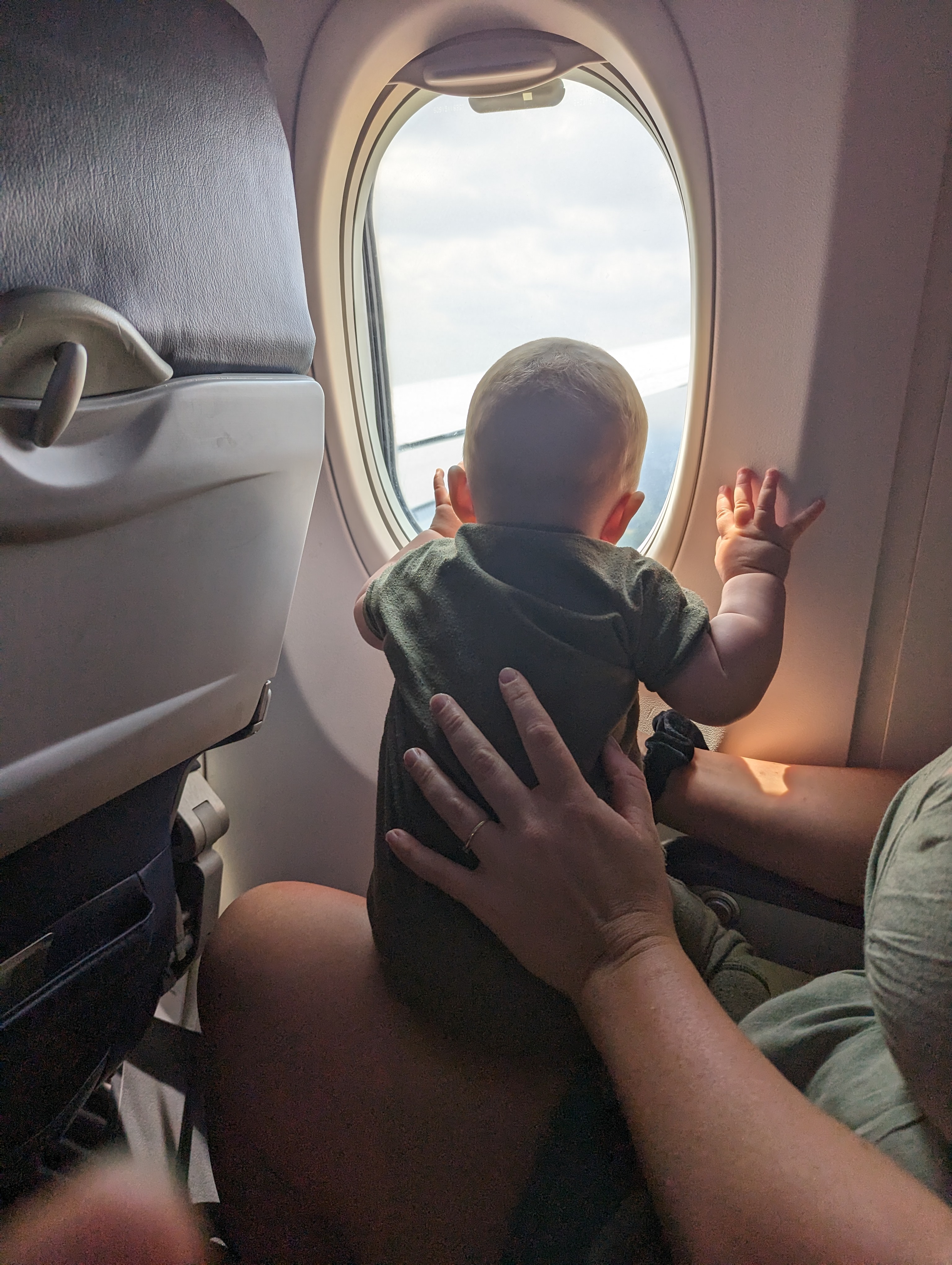 - If flying with a lap infant, you won’t have much space. Hard toys that don’t suction onto the tray table or window will somehow smack you in the face!
